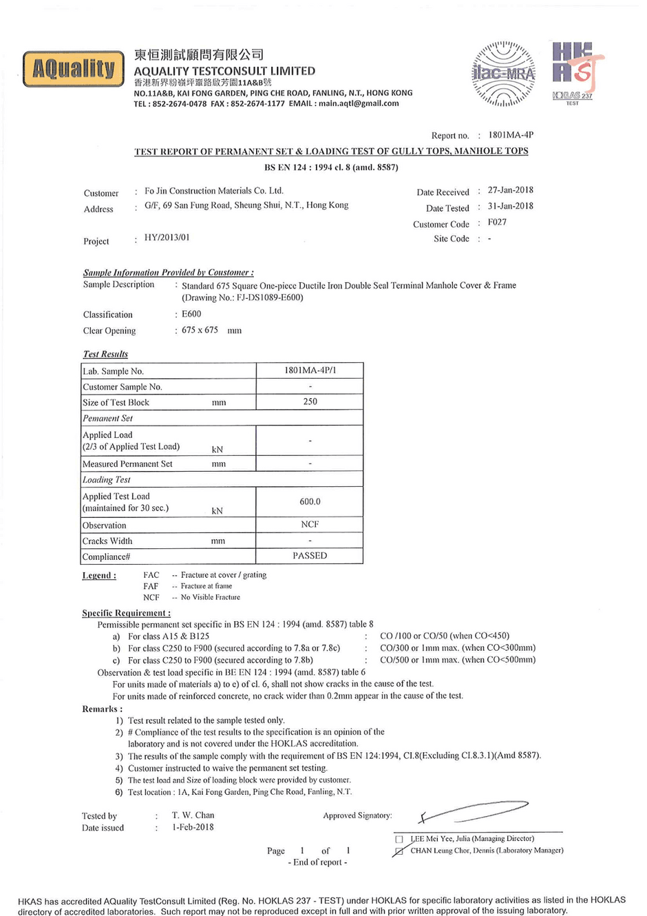 DS1089 675X675mm E600 Test Report